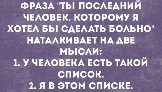 Батю пришили. 2. Утром Андрей Павлович был найден убитым в подъезде своего дома. Соседи сообщают, что видели его таким не раз 3. В 1994 Курт Кобейн решил записать новый альбом, но потом эта мысль совсем вылетела у него из головы. 4. Человека, ведущего здоровый образ жизни, могут разобрать на органы. А ведущего нездоровый — на цитаты. 5. Если хотите избавиться от мертвого тела — отправляйте его куда-нибудь Почтой России. Пропадет и никто никогда не найдет. 6. — А вакцина от КО**Д-19 опасна?