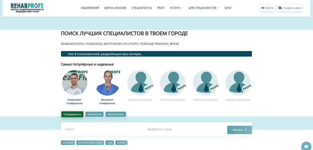Сервис лучших специалистов в твоем городе. Реабилитологи, инструктора по спорту, психологи, врачи.