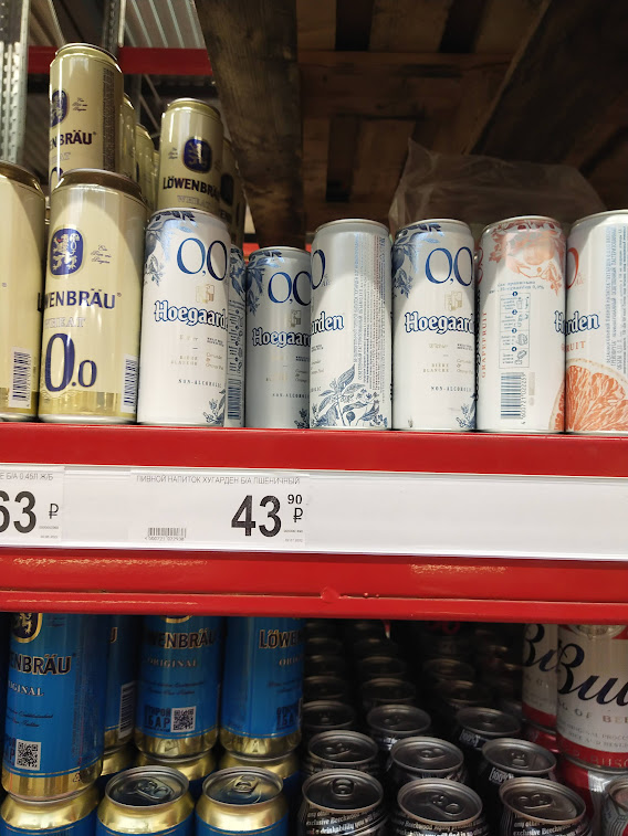 И там, где вы угадали, я заметил безалкашку от Хугардена, но в каких-то других, более худых и вытянутых баночках. Повертев пиво в руках, я прочел, что оно уже не бельгийское, а наше, родное. Естественно, интерес и небольшая цена подтолкнули меня на покупку)))