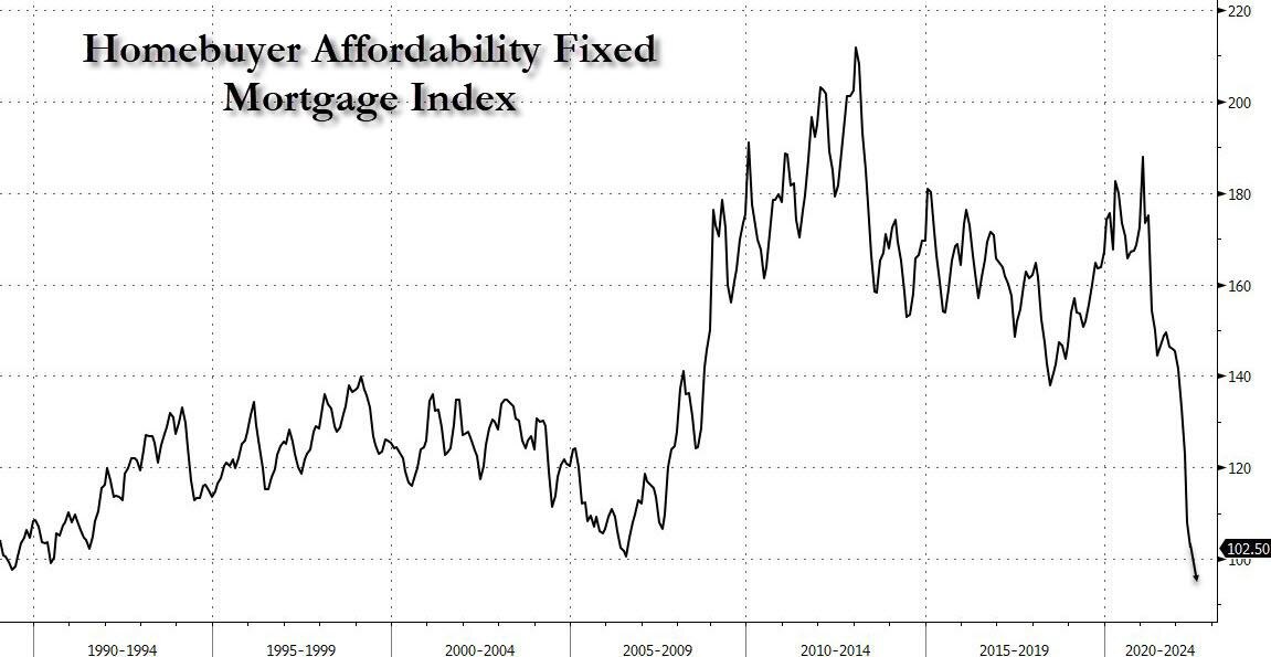 … что вполне предсказуемо: в конце концов, ставки по ипотечным кредитам растут самыми быстрыми темпами за всю историю, достигнув максимумов десятилетия, а доступность жилья в США падает до самого низкого уровня в истории...