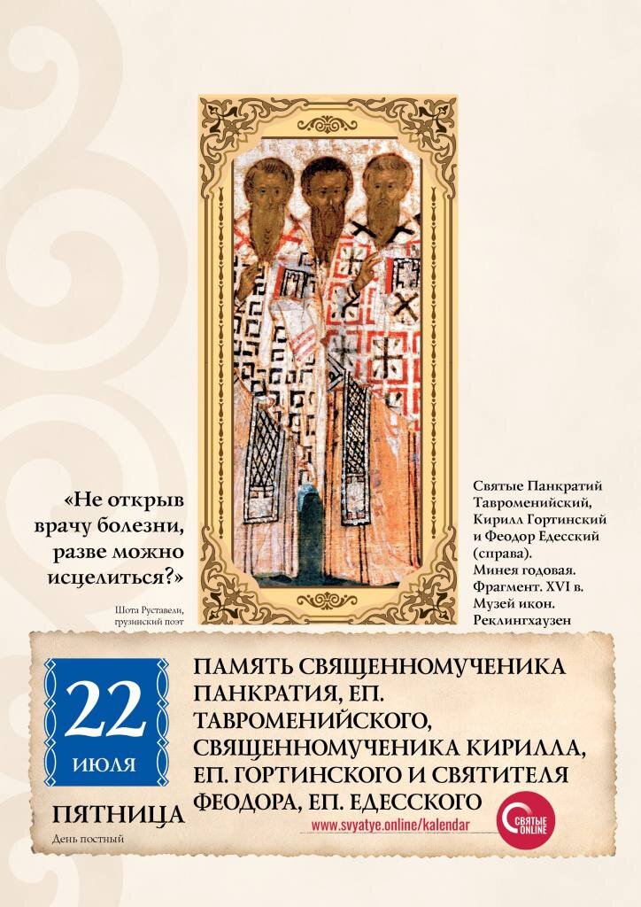 22 июля - память священномученика Панкратия, епископа Тавроменийского. Евангелие дня.