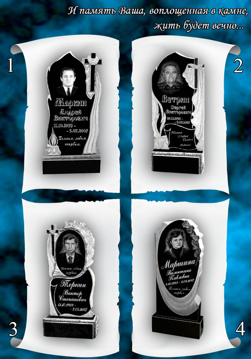 Сегодня я решил представить каталог наших товаров. Все представленные памятники имеют размеры от 80см до 120см. За исключением некоторых моделей, которые имеют нестандартную форму. Ниже будут представлены памятники стандартной формы из гранита. Далее у нас идут памятники стандартной формы из мрамора Мрамор для памятников добывается из Полевского месторождения на Урале. На данный момент это все стандартные формы памятников. Однако у нас есть возможность изготовить памятники по фотографии клиента или по его индивидуальному проекту.