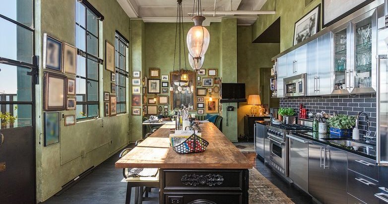 Джонни Депп - один из самых востребованных актеров мирового кинематографа. Он же - режиссер, музыкант, сценарист и продюсер. Так же занесен в Книгу рекордов Гиннесса как самый высокооплачиваемый актер современности. Сегодня мы идем в гости к Джонни в его уютный особняк в самом центре Лос-Анжелеса. Говорят, хочешь узнать человека - загляни в его дом, посмотри на дизайн и быт. Так мы и сделаем, отправимся прямо на кухню к актеру. Почувствовали себя в музее? Действительно, если убрать гарнитур, то очень похоже. Кухонный дизайн выполнен в эклектическом стиле, металлические фасады и рабочая зона здесь соседствуют с винтажной мебелью, элементами декора и множеством картин на стене. Интересный факт о последнем - Деппу не чужда тяга к коллекционированию, в разные годы актер собирал все, начиная от насекомых до образцов огнестрельного оружия, что отразилось на такой замысловатом оформлении стен на кухне. Гарнитур выполнен из нержавеющей стали - это самый прочный, устойчивый к царапинам, влаге