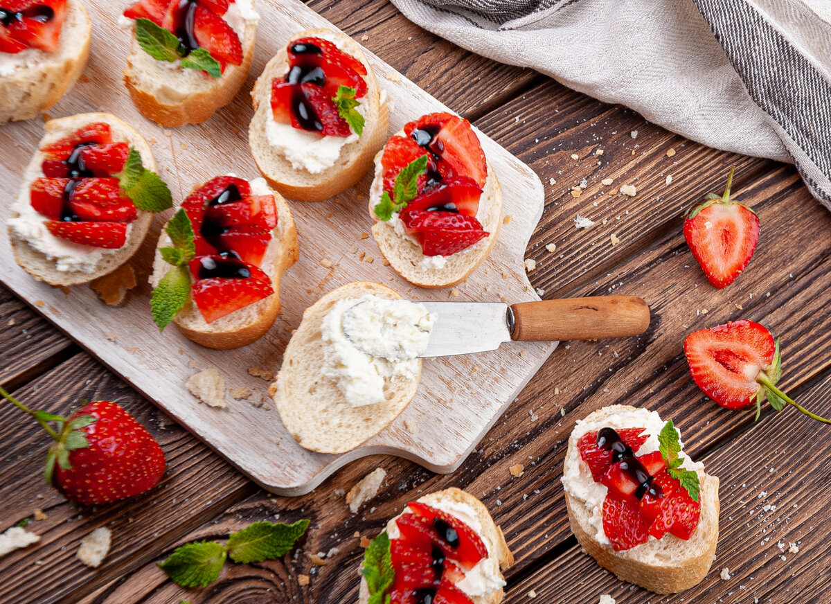никогда раньше не пробовала делать "живые" фото, в которых рассказывается история. сидел человек (а может быть фея, а может быть президент Бразилии, а может быть Тимоти Шаламе) и делал бутерброд. а потом вдруг раз, и куда-то убежал. может быть спасать мир, а может у него чайник закипел. поэтому крошки не убрал, нож не вымыл. вот как есть, в халате и домашних тапочках( но в ситуации с Тимоти лучше чтобы без халата) убежал. а бутерброды были такие: багет нарезать, намазать творожный сыр. выложить нарезанную клубнику, добавить веточку мяты и полить бальзамическим соусом. #рецепт #летнийрецепт #клубника #готовитьпросто #десерт #летнийдесерт #тимотишаламе #бутерброд