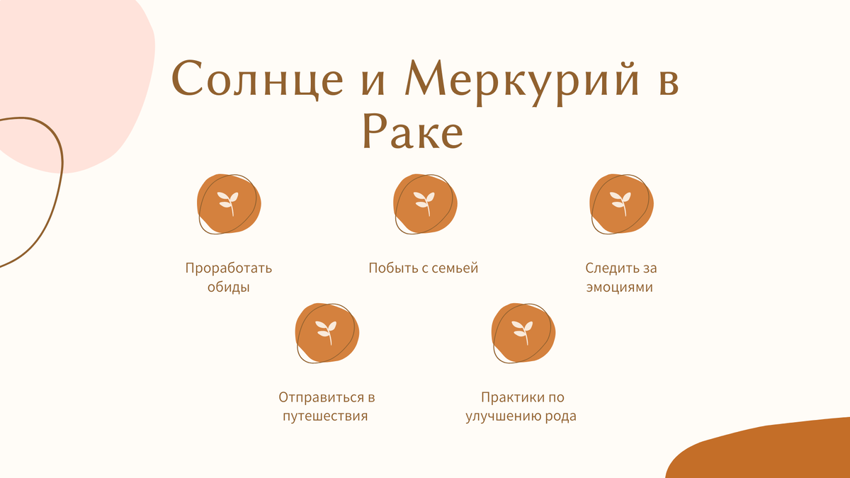 Солнце и Меркурий перешли в знак Рака , поэтому этот знак сейчас активен и соотвественно окажет на нас своё влияние) Какое оно? ▫️Меркурий в Раке до 1 августа •Мы переключаемся на более эмоциональное восприятия информации •Главное не что сказать , а как ! Будьте внимательны , сейчас многие становятся более восприимчивы •Не хватает реальности и настроение будет влиять на качество получаемой информации . •Погружённость в свои мысли. В себя . Инертность Как гармонизировать ? •Идеи оставьте до более активного времени. Пока пусть зреют •В этот период отлично проработать обиды •Будьте в настоящем •Практики ментального очищения ▫️Солнце в раке до 17 августа •Прекрасное время для путешествий с семьей •Появляется желание покопаться в себе . •Самооценка начинает «плавать» от настроения, от окружающих людей •Больше проявляется «отдавать»,жертвовать •Активизируется желание быть с семьей, что-то сделать для семьи Как гармонизировать ? •Сейчас прекрасное время для того, что