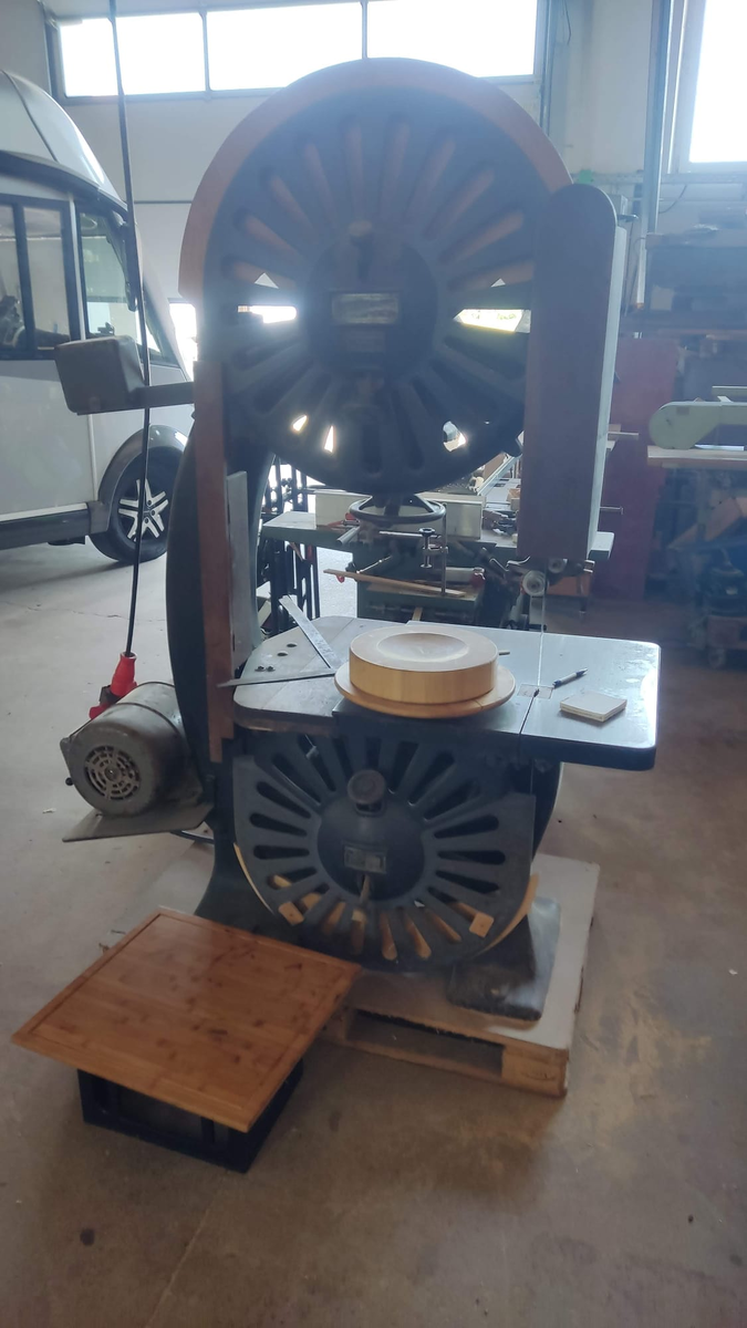 Работают, значит, "наши" у немца одного. Зашли в ангар - чего там только нет))) Но особое внимание привлекла эта вундер-машина: Пила с названием "Nurnberger Maschinen Ring" 1925 года выпуска. Наши, естественно, спрашивают откуда такое чудо. Хозяин купил ее у одного знакомого девяностолетнего старичка. Тот сказал, что стар уже и не может на ней работать. А в молодости выпиливал одно время на ней железные листы для поврежденных военных самолетов. Деньгами хозяин нынешний не поскупился - взял за 15 тыщ евро. Старик еще говорил, что приходили к нему люди какие-то - цену копеечную предлагали - типо давайте вывезем вам мусор. Отказал. Как оказалось - не прогадал. Через 3 года у "машинки" столетний юбилей.