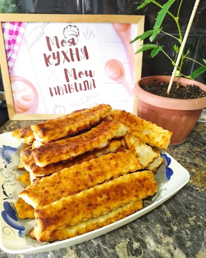 Кто планировал сегодня отдыхать и ничего не делать?🤦 Увы, любопытно взяло верх. Полдня мне попадался рецепт сырных палочек и вызывал у меня недоумение - "Почему палочки? Это же просто лепешки с сыром🤔" В итоге лепешки и получились 🤷 Попробуйте приготовить, и решить что это для вас "Сырные палочки" или "Лепешки с сыром "😅 Ингредиенты: яйца, соли, сахара, Любая зелень, сыра, кефира, Разрыхлитель или сода пол чайной ложки, Мука сколько возьмёт для замеса Способ приготовления: Приготовление: Яйца, соль, сахар перемешать венчиком, влить кефир, перемешать. Добавить сыр и зелень. Добавить соду и начинать всыпать муку. Замешать руками густое, эластичное, мягкое тесто. Раскатать тесто толщиной около 1-1,5 см. Нарезать как показано на фото, или как вам больше нравится) Жарить на большом количестве растительного масла с двух сторон по 1-2 минуте. Подавать идеально со сметаной, сырным или грибным соусами и в горячем и в холодном виде. Приятного аппетита 😋.