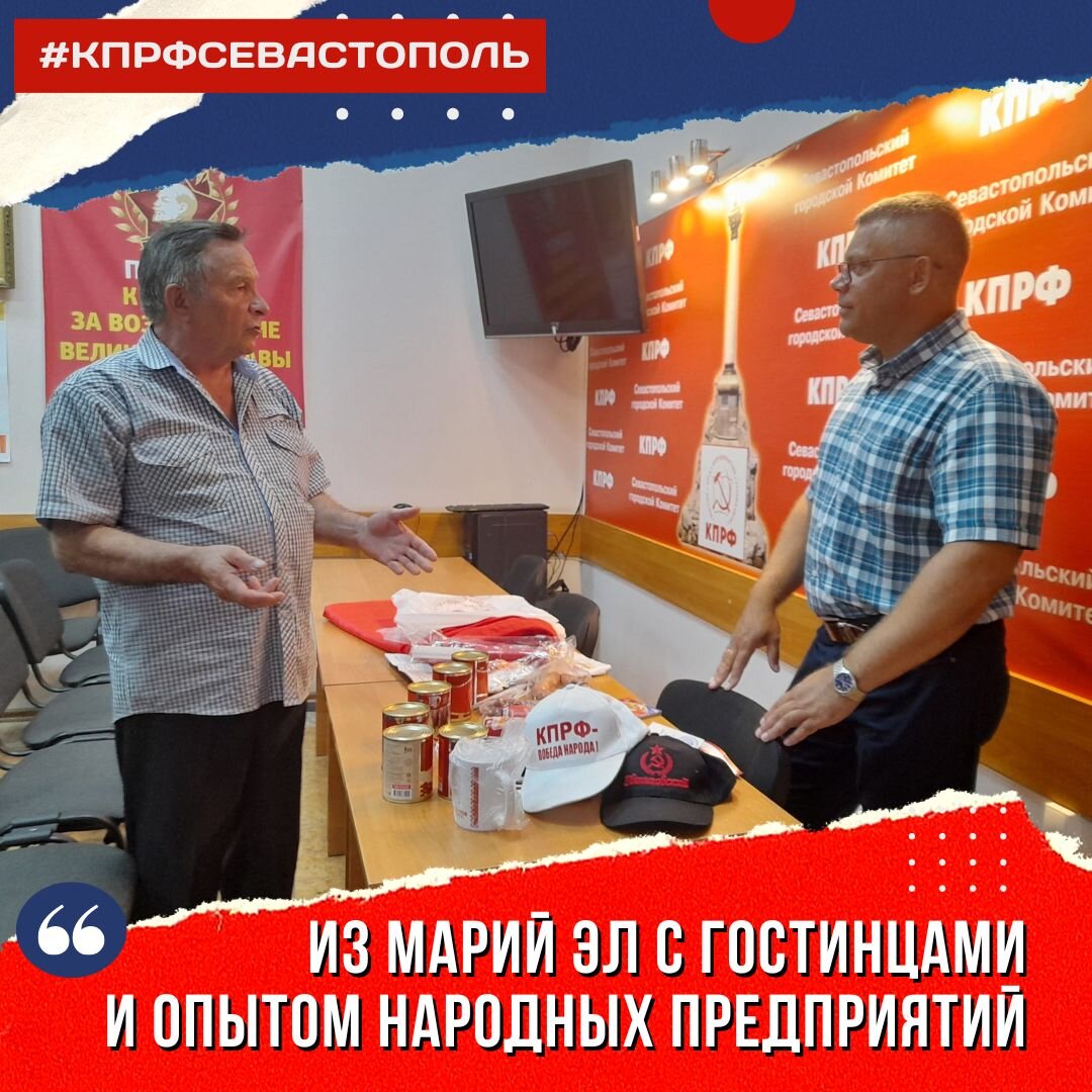 Как рассказал Николай Михайлович, он не первый раз приезжает в Севастополь и решил познакомится с местными коммунистами, а заодно привезти гостинцы — сувениры и продукцию Народного предприятия «Звениговский», руководителем которого является Иван Иванович Казанков. Это предприятие, наряду с Совхозом имени Ленина, является своеобразным островком социализма и ярким примером того, что получать достойную оплату за свой труд и производить качественную и доступную продукцию — это реально.