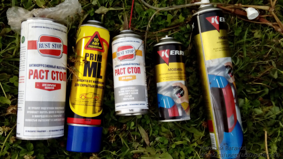 Приобрел много разных средств на пробу. Их тест уже ранее публиковал. Сначала обработал Раст-стопом лонжероны где смог подлезть, трубки в комплекте не было, подошла от другого баллона, в принципе консисте