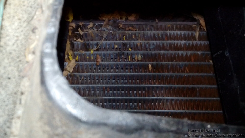 Всем привет, дорогие подписчики! Решил помимо подробных инструкций по ремонту своего автомобиля ВАЗ-2107i 2006 года выпуска начать выкладывать его старые бортовые записи по ремонту, обслуживанию, тюнингу и прочие заметки. Пойдут в хронологическом порядке начиная с самой первой 4 года назад, будут перемежатся с обычными инструкциями по ремонту. Возможно, кому-то будут полезны. --------------------------------------------------------------------------------------- 10 апреля 2019 Всем привет! Пролистывал журнал и заметил, что забыл написать об осенней разборке печки с целью почистить радиатор. Так как при обработке подтрапеционного пространства часть мовиля с раст-стопом из-за открытой заслонки попала на радиатор и при работе печки появился запах. Тем более, при фотографировании под заслонкой обнаружилась листва и пух, металлические губки хоть и задерживают часть мусора, но, видимо, не так эффективны как хотелось бы. Радиатор решил не снимать и жидкость не сливать, а лишь отогнуть край, ч