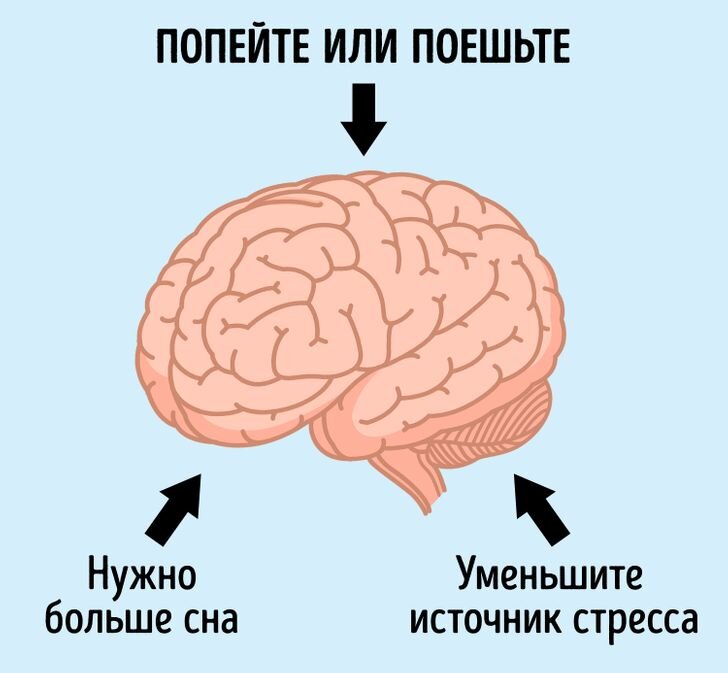 - Головная боль в разных местах может сообщать о потребностях мозга. Боль в области макушки — вам нужно попить или поесть. Лоб — нужно больше сна. Затылок — избыток стресса