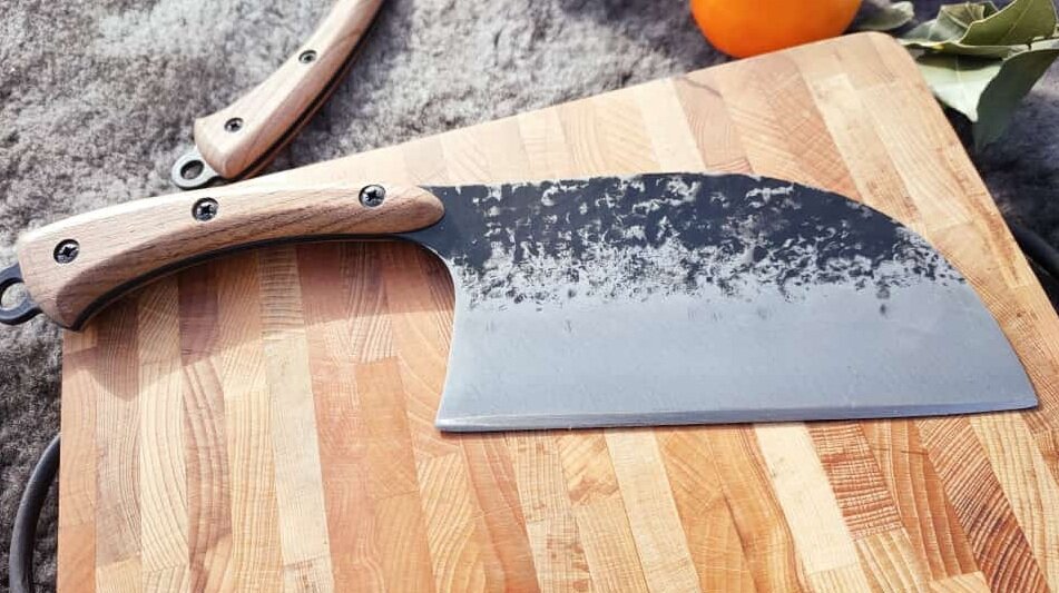 Сербский нож — это уникальное сочетание форм классической тяпки для рубки мяса и китайского поварского ножа «Цай Дао». Заточка в «Линзу», прямая рукоять, изгиб режущий кромки — всё это позволяет использовать нож при разделке и шинковке максимально практично. Клинок выполнен из кованой стали ст 45. Данный нож цельнометаллический с обкладками на рукояти из ясеня.