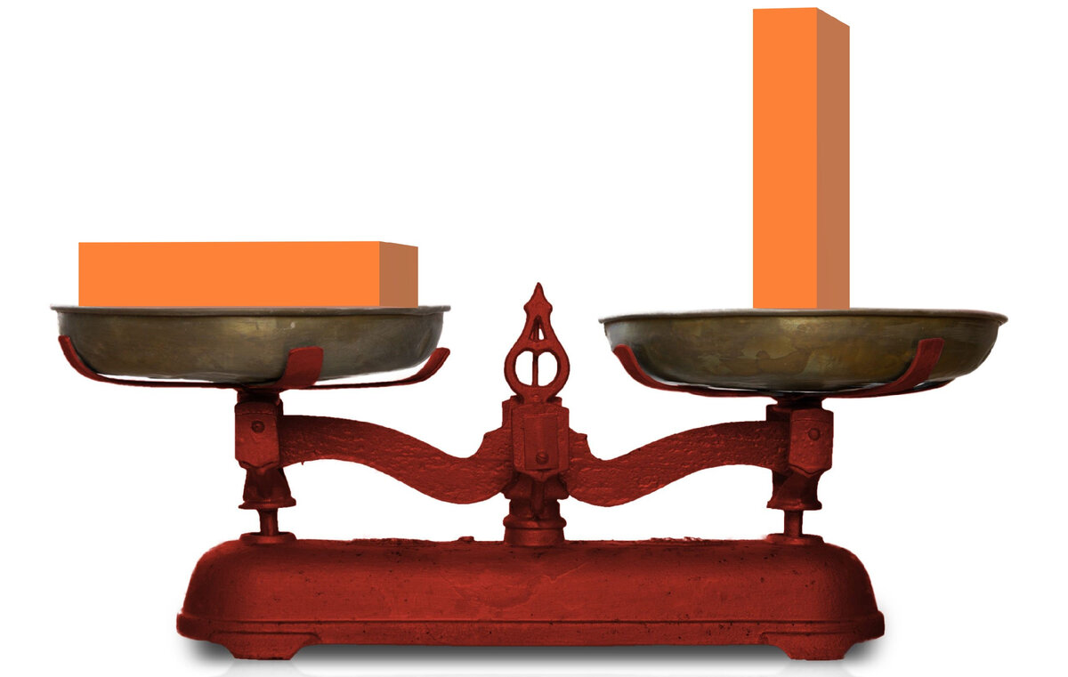 В публикации «Что тяжелее: 1 кг железа или 1 кг ваты?» я привел пример взвешивания двух одинаковых кирпичей на весах. При этом один из кирпичей лежит на широкой грани, а второй стоит на боковой грани.