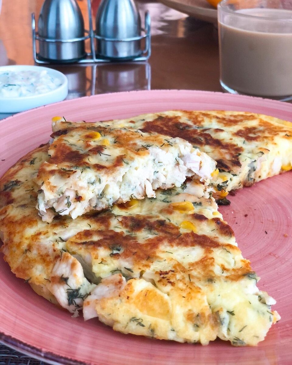Очень простой в приготовлении и сильно вкусный пирог! Можно худеющим) Ингредиенты: ⠀ Лук и куриное филе мелко нарезать, сыр натереть на мелкой тёрке. Отдельно в миске смешать яйца, кефир, муку, разрыхлитель, щепотку соли и сыр. На сковороде обжарить лук, добавить куриное филе, посолить, поперчить, жарить 5 минут. Добавить кукурузу и зелень, готовить ещё 5 минут. Тесто вылить в сковороду, перемешать с куриной частью. Накрыть крышкой и готовить на минимальном огне ~10 минут. Тесто должно схватится. С помощью тарелки перевернуть пирог на другую сторону и жарить ещё 5 мин. Пирог можно подать с сырным соусом. Для этого смешать натуральный йогурт, мелко натёртый сыр, чеснок и зелень. Вкусно и так, и так. Приятного аппетита! Ну и по традиции, видеорецепт)