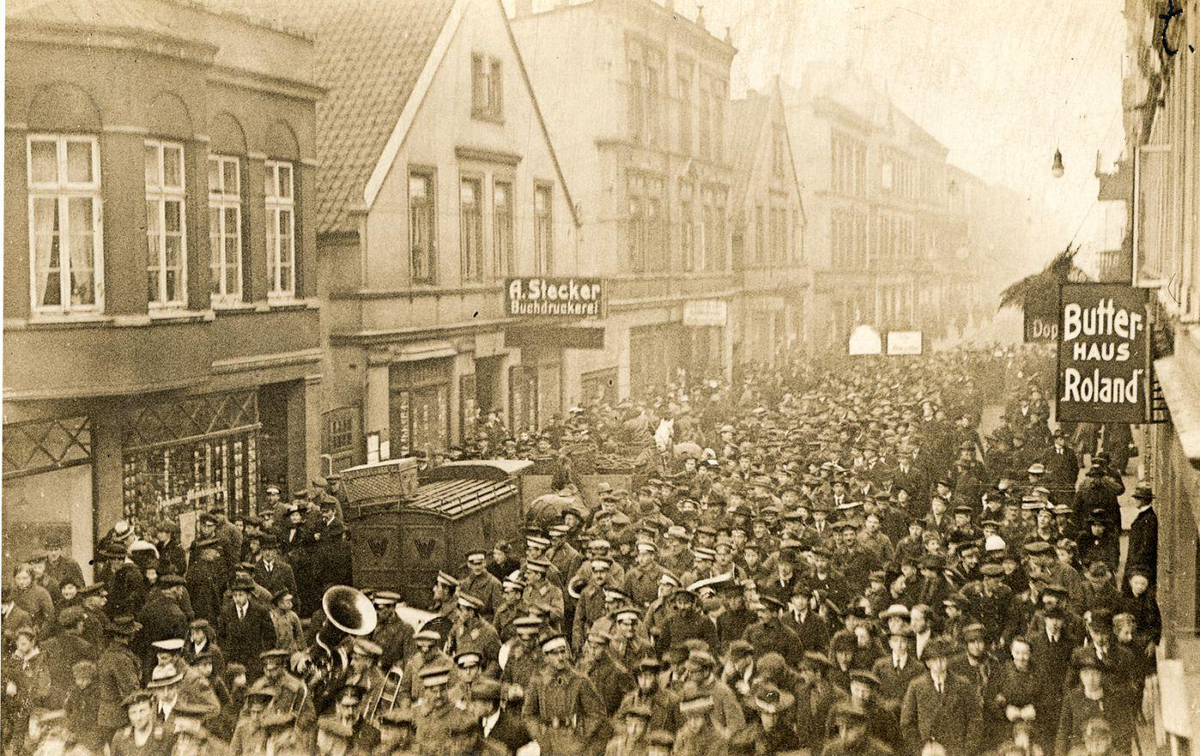 Уже в ночь с 4 на 5 ноябрь весь «Kriegsmarine» переходит на сторону революционеров, после чего события начинают развиваться еще стремительней - своим порывом и воодушевлением матросы подали сигнал к революционным действиям во всей Германской Империи - рабочие начали брать власть по всему побережью Германии и под лозунгами Русской Революции: «Формируйте Советы!», - образовывать Советы в крупнейших городах Империи. 6 ноября начинаются волнения в самом Берлине, власть Кайзеровской верхушки начинает рушиться. Ночью 9 ноября Красная Гвардия начинает отрезать Берлин от внешнего мира, солдаты и рабочие захватывают военное министерство, имперскую канцелярию, управление военно-морским флотом, городскую комендатуру, здание главного морского штаба, а также замок и конюшни. Параллельно с этим газета СДПГ «Форвард» публикует заявление, согласно которому «большинство гарнизона, с их пушками и артиллерией, ставит себя в распоряжение Рабоче-Солдатского Совета».