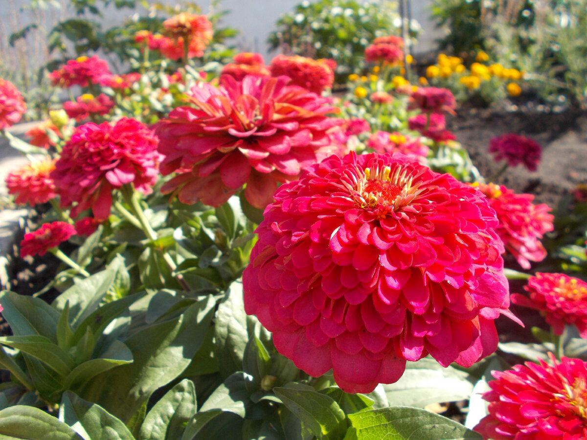 Здравствуйте, дорогие мои подписчики и гости канала! Наверняка, каждый из нас, с раннего детства, знаком с этим неприхотливым цветком. Ещё палисадники наших бабушек пестрели яркими разноцветными шапками из бархатных лепестков "майоров" или "панычей". Так в народе называли циннии. За свой бравый вид и устойчивость к любым внешним условиям(стойкий оловянный солдатик цветочного мира), цинния и получила звание майора. Высокие, стройные, не склоняющие свои головы под тяжестью пышных соцветий, они украшали цветники до самой осени. Высокорослые сорта циннии по-прежнему достаточно популярны и представлены большой группой различных сортосерий. Но, подъёму волны популярности этого растения поспособствовали новые карликовые сорта. Шаровидные плотные и компактные кустики в течении всего сезона покрыты многочисленными очаровательными цветочками, 5 - 7 см в диаметре. По махровости они бывают простые, имеющие только один ряд лепестков и очень напоминают ромашки, махровые и густомахровые, похожие