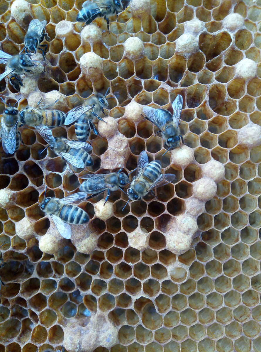 Как известно, в пчелиной семье есть три варианта особей: матка, трутни и рабочие пчелы. Матка - сеет яйца, из которых выходят молодые личинки рабочих пчел или трутней. Механизм отлажен. Но что будет если с механизмом что-то разладится? Вот матка. Она сеет как положено одно в центр ячейки. Но почему-то пчелы эти ячейки начинают массово перестраивать в более крупные, вытягивать их на большую длину. Если посмотреть на рамку в целом - засеянный участок выглядит как горб на фоне более мелких ячеек. Потому и называется: горбатый расплод. Матка сеет как положено: равномерно засевая все пространство сота от центра к краям. Но пчелы ячейки перестраивают. Значит что-то случилось с маткой. По какой-то причине она перестала откладывать оплодотворенные яйца и начала сеять не оплодотворенные - трутневые. Причем сеять вне плана, не в специально подготовленные трутневые ячейки. Если матка старая - возможно она при зимовке застудила брюшко или еще какая болезнь и ее обязательно надо менять. Молодая мо