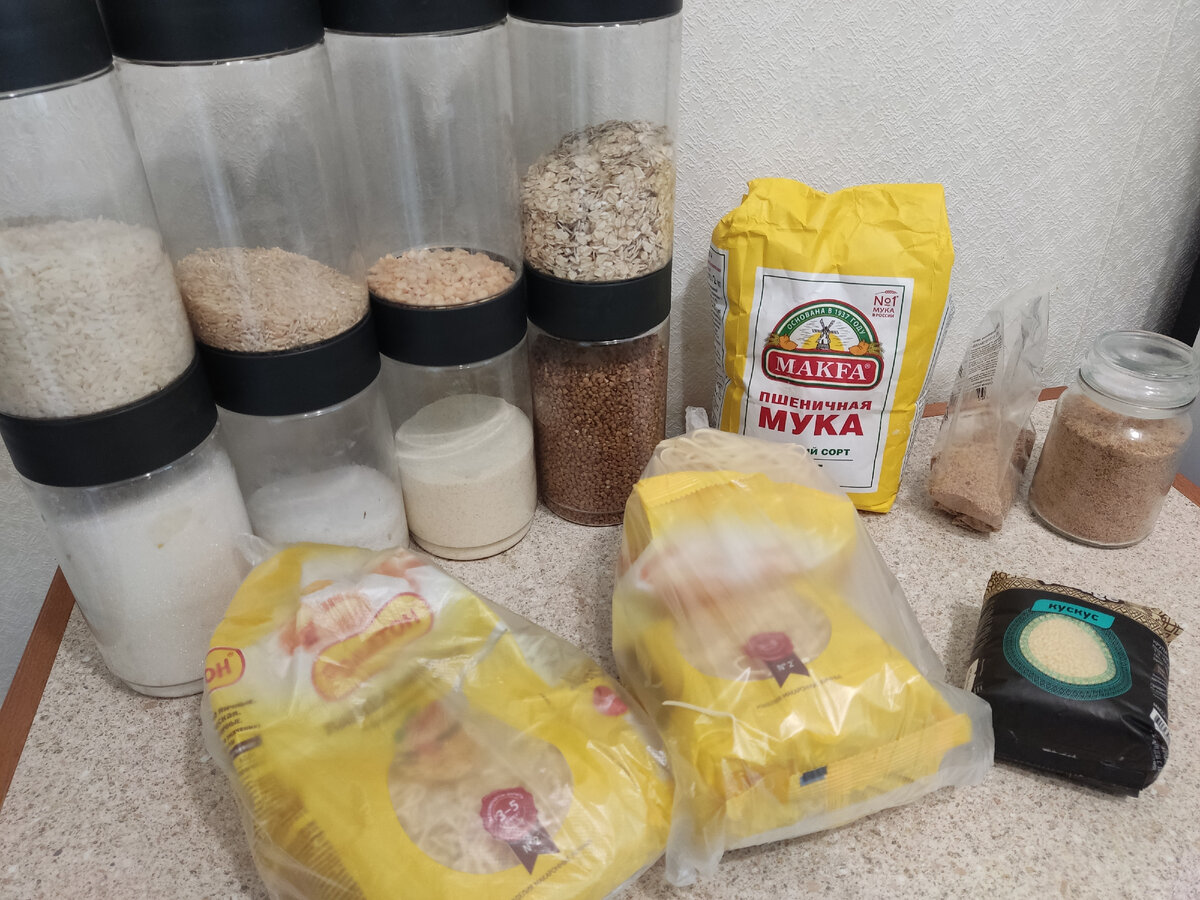 Вчера не дошли руки сделать ревизию запасов, но я обещала это сделать. Так что рассказываю, что у нас есть дома из продуктов и что пришлось докупить. В кошельке после трат, как вы поняли, осталось 2155 рублей. Эти деньги нам надо растянуть до конца месяца. РЕВИЗИЯ ЗАПАСОВ Круп и сыпучего, как мне кажется, у нас вполне достаточно. 1. Лапша «Ролтон» — 720 г 2. Рис «Лазер» — 410 г 3. Геркулес — 195 г 4. Горох — 60 г 5. Бурый рис — 160 г 6. Гречка — 650 г 7. Манка — 350 г 8. Сахар — 725 г 9. Соль — 455 г 10. Кускус — 320 г 11. Мука — 1410 г 12. Панировочные сухари — 300 г В холодильнике набор продуктов вот такой, не считая готово горохового супа и мёда (вечно забываю про него) ⤵️ В заморозке полупаковки фасоли, печень, спинка куриная на суп, бёдра и крылья в разных маринадах, про которые рассказывала вчера, и пачка масла. Набор чая, приправ, сухофруктов и овощей вот такой ⤵️ Растительного масла осталось меньше двух литров. ЧТО ГОТОВИЛИ И ПОКУПАЛИ Ревизию запасов делала после завтрака.