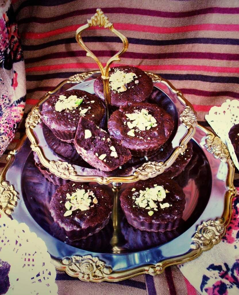 Шоколадные кексы " муэле". Вкус потрясающий, насыщенный, шоколадный ,а готовить их - проще простого! приготовления этого вкуснейшего десерта займёт всего пол часа! Формочки для маффинов или кексов смазать сливочным маслом и слегка присыпать мукой. поставить формочки в холодильник. я брала силиконовые формы. 200 гр черного шоколада (я взяла "рошен брют", 78% какао), 120 гр хорошего сливочного масла (я брала "ферма", 73%), шоколад мелко наломать, масло нарезать, сложить всё в удобную ёмкость и растопить на водяной бане, помешивая. когда шоколадно - маслянная смесь станет однородной, гладкой, снять кастрюлю и добавить стакан сахара, тщательно размешать, слегка взбивая, ввести 70 гр просеянной пшеничной муки, тщательно размешивая. в готовое тесто ввести яйца (3 шт). яйца вводить по одному, каждый раз хорошо перемешивая тесто, до однородности. масса должна быть однородной. ввести в тесто 50 гр.очищенных и мелко нарубленных несолёных фисташек. перемешать. духовку нагреть до 180 град