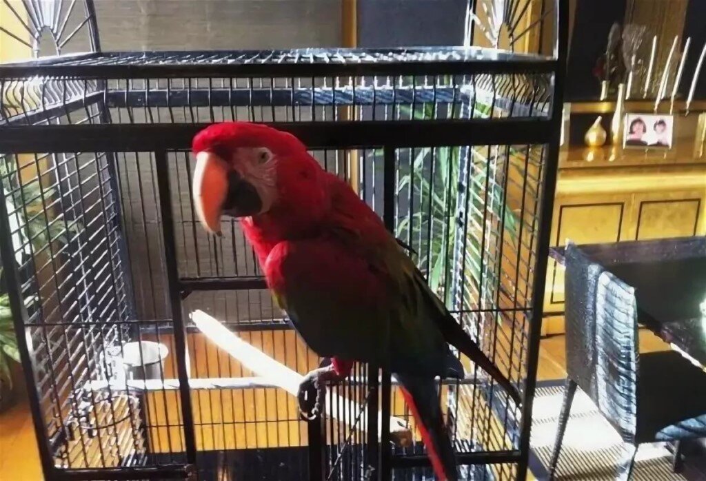 Он в ужасе начал быстро осматривать комнату, и , наконец, луч фонарика остановился на попугае, клетка которого стояла в углу.