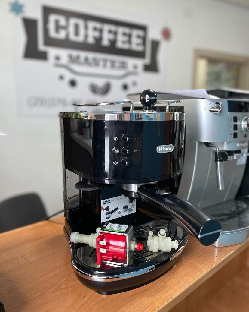Самые частые отказы в работе конечно же из-за накипи и забитых сеток в рожке. Это классика, пользоваться до упора без обслуживания, пока не «ляжет». Из более серьезных проблем, зачастую это обратный клапан (начинает стравливать давление обратно в бак, кофе не льёт в кружку, проливает воду под себя). Если все в порядке, а кофе еле течет, скорее всего вышел из строя вибрационный насос (помпа). Зачастую эти запчасти меняем одновременно (как на фото). Остальные поломки, это скорее болячки разных моделей. Какую кофеварку лучше выбрать для покупки? Из бюджетных мы рекомендуем кофеварку Saeco Poemia, сейчас она выпускается под брендом Gaggia. Очень надежное устройство и механический клапан в рожке позволяет получать качественный кофе долгие года. Широкую линейку рожковых кофеварок Делонги, тоже можно рассматривать к покупке. Важный момент на который стоит обратить внимание - это сетка в рожке. Обязательно берите разборную. Что касательно разных китайцев, не рекомендуем. Может