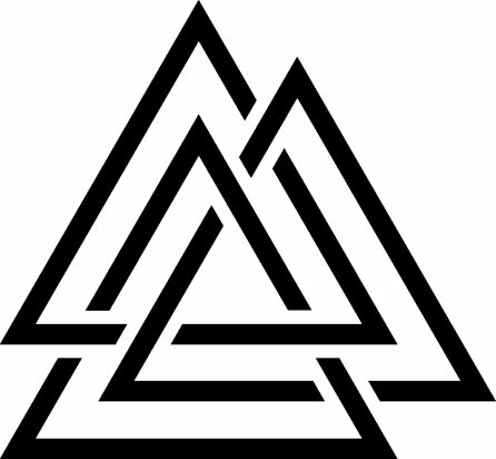 Чтобы выйти на другой уровень, чтобы смочь работать с матрицами, чтобы освоить вертикаль, нам надо в нашей пси-реальности уйти в пси-реальность пси-реальности. Это как во сне уснуть во сне. В этом, в более глубокой (скажем так) пси-реальности вопросы обыденности уже уходят и нам надо будет «расписать преферанс на троих». Сознательное «Я», матрица души (высшее «Я») и подсознательная матрица, как матрица Судьбы (подсознательное «Я»). Про «преферанс на троих», - это, конечно, шутка, так же как тема некого «сражения» высшего «Я» и подсознательного «Я». Нет, тут все три «Я» сопрягаются в схему Валькнута. Три части Валькнула независимы друг от друга, являются самостоятельными, но находятся в сопряжении, во взаимосвязи друг с другом и взаимно влияют друг на друг (квантовая запутанность). Сам Валькнут приведен на рисунке ниже.