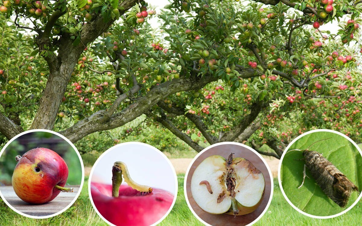 Даже неприхотливые и устойчивые к неблагоприятным факторам яблони могут страдать от нашествия опасных насекомых. Вредители поражают все части деревьев: ствол, побеги, соцветия, корни, плоды. В итоге урожай портится, листья опадают, нарушается питание яблони, она усыхает и погибает. Летом деревья чаще всего страдают от тли, яблоневого войлочного клеща, плодожорки, щитовки, щелкуна, хрущика, яблочного цветоеда, плодовой казарки, усачика, листовертки. Обработку проводят в профилактических целях, а также при первых признаках поражения. Типы вредители и способы борьбы с ними: 1. Черви. Они портят яблоки в период созревания. Бороться с ними можно с помощью инсектицидов и биопрепаратов. Опрыскивать нужно не в момент поселения червей в плодах, а когда они массово покидают свое убежище. Хороший эффект дают обработка медным купоросом (5%) и побелка штамба. 2. Гусеницы. Плодожорка, боярышница и моль поражают деревья все лето. Они питаются древесиной, листьями и плодами. Для борьбы с гусеницами п
