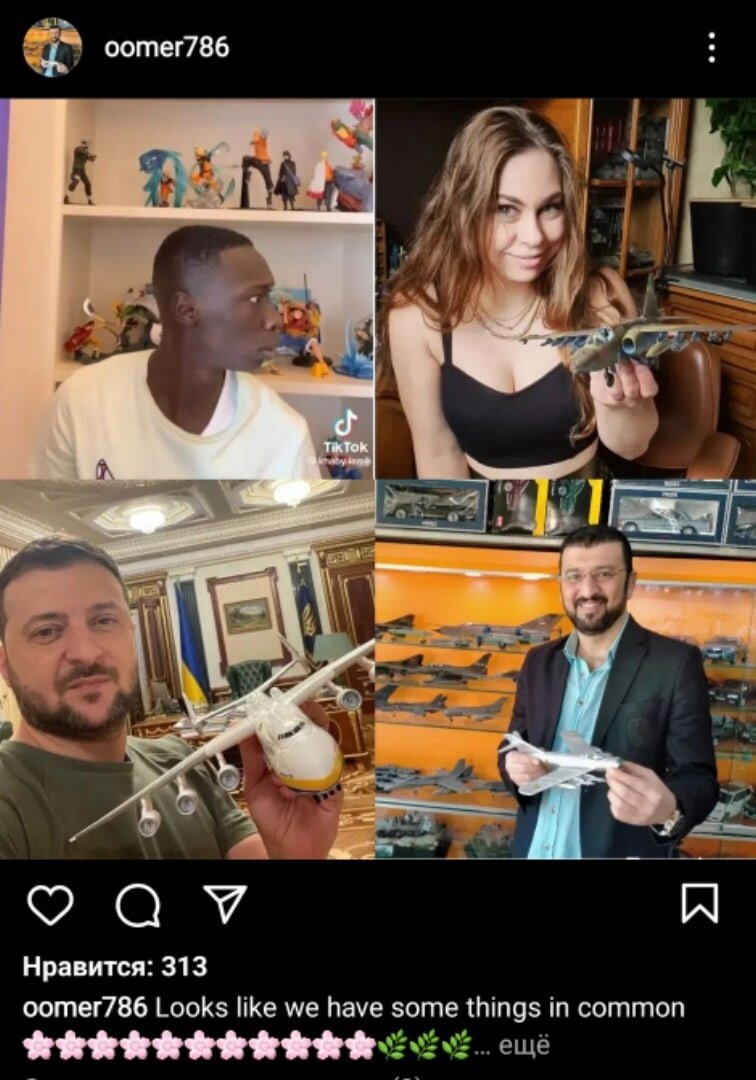 В одной из запрещенных сетей я увидела мем с моим участием. Оказывается у президента Украины есть моделька транспортного самолета Мрии. Правда осталась она у него в виде масштабной модели. А я в этом меме с моделью самолета Су-25. А украшать свои кабинеты моделями различной техники старая традиция советских и постсоветских чиновников.