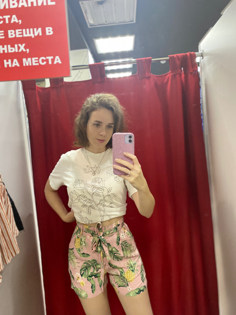 В последнее время захотелось носить шорты, поэтому решила купить обновки. Искала что-то легкое, из натуральной ткани, симпатичное. Решила для начала сходить в секонд, там иногда попадаются неплохие варианты. Примерила 3 разных модели, сейчас покажу фото. Мне понравился веселый рисунок и нежный цвет. Думаю, такие гетры смотрелись бы с белым топом. Они сели впритык, не жмут, но есть ощущение скованности. Ткань не тянется. Минус в том, что это синтетика. А мне в жаркую погоду как-то некомфортно в вещах из искусственной ткани. Да и шорты бы на размер побольше, чтобы были свободными. А так, стоят они даже меньше 300 руб. Эта модель не понравилась. Выглядит как юбка, в целом интересная, но расцветка не моя. Стоят они тоже чуть меньше 300 руб. Не понравилась резинка, она довольно грубая. Именно поэтому решила примерить ещё одни шорты. Правда, ткань не легкая, как я хотела. Материал джинсовый, достаточно плотный. Шорты новые. Я бы такие купила, но не хотела обтягивающие. Думала, что бу