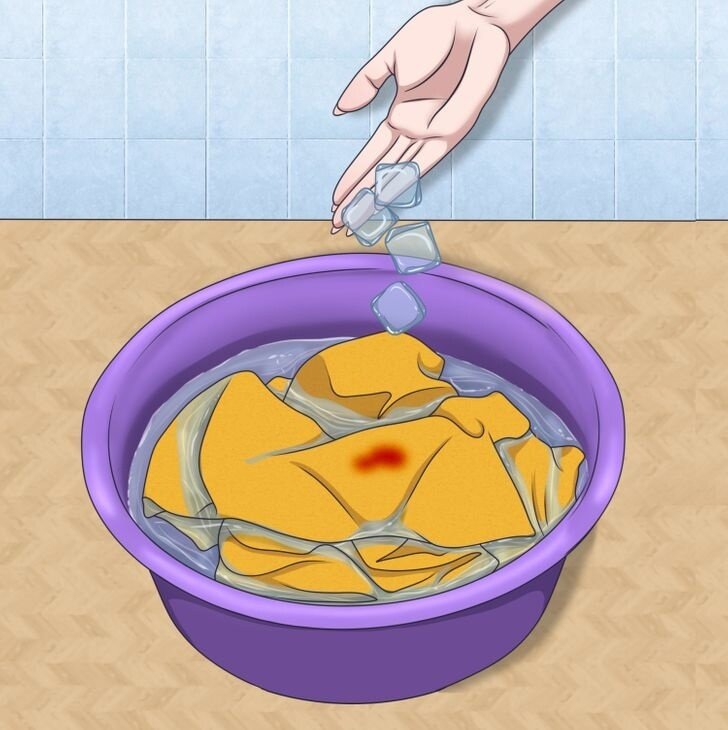 Чтобы избавиться от пятен крови на одежде, стоит сначала промыть ее под струей холодной воды, а потом замочить примерно на 15 минут. Чем ниже будет температура жидкости, тем лучше, так что в таз можно добавить даже кубики льда. После того как пятно частично растворится, его можно полностью вывести с помощью соли и шампуня. Ткань отжимается, и в нее втирается 1 ст. л. соли. Потом добавляется шампунь, а поверх него еще 1 ложка соли. Пятно нужно аккуратно потереть, а затем смыть пасту холодной водой.