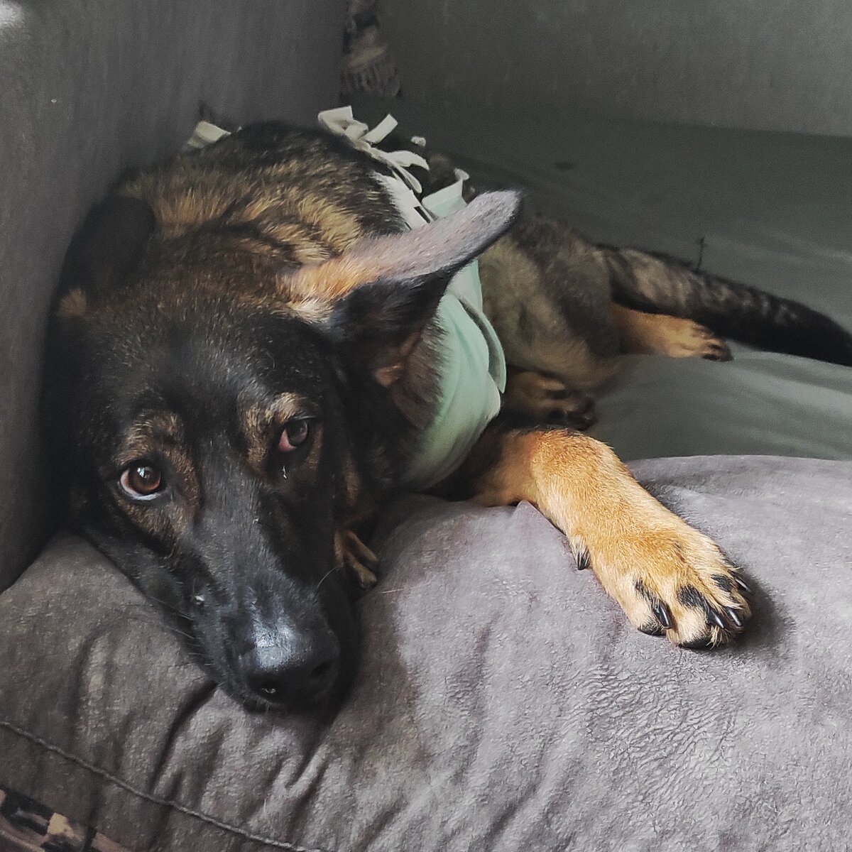 *Всё описанное в статье - плод чтения, консультаций, раздумий и применённого личного опыта пока ещë не специалиста* Арьюшка в попоне - чудушко и прелесть. Милый пупсик. Разве такая душка может причинить кому-то вред? Как вообще вы могли подумать, что эта пусечка - агрессор? На фото пусечка ещë не отошла от наркоза. И ей плевать, кто из собак куда пошëл и что делает. Временно. Агрессивные собаки - тревожные собаки. Из мир полон опасностей, которые необходимо прогнать. А иногда - и сожрать. Мы готовы к тому, что в ближайшее время Арья будет нервничать. Шов болит, попона мешает, состояние непонятное. Ну хорошо, боль дня на три, швы снимут в начале августа, попона тоже исчезнет тогда же. А вот на гормональную перестройку уйдëт не меньше двух месяцев. Ошейник Адаптил справится ли? Когда начинать работать с Арьей команды и упражнения? Сколько вопросов... Невротичной, тревожной собаке нужен успех. Ей необходима деятельность, за которую приходит похвала. Так она становится увереннее и посте