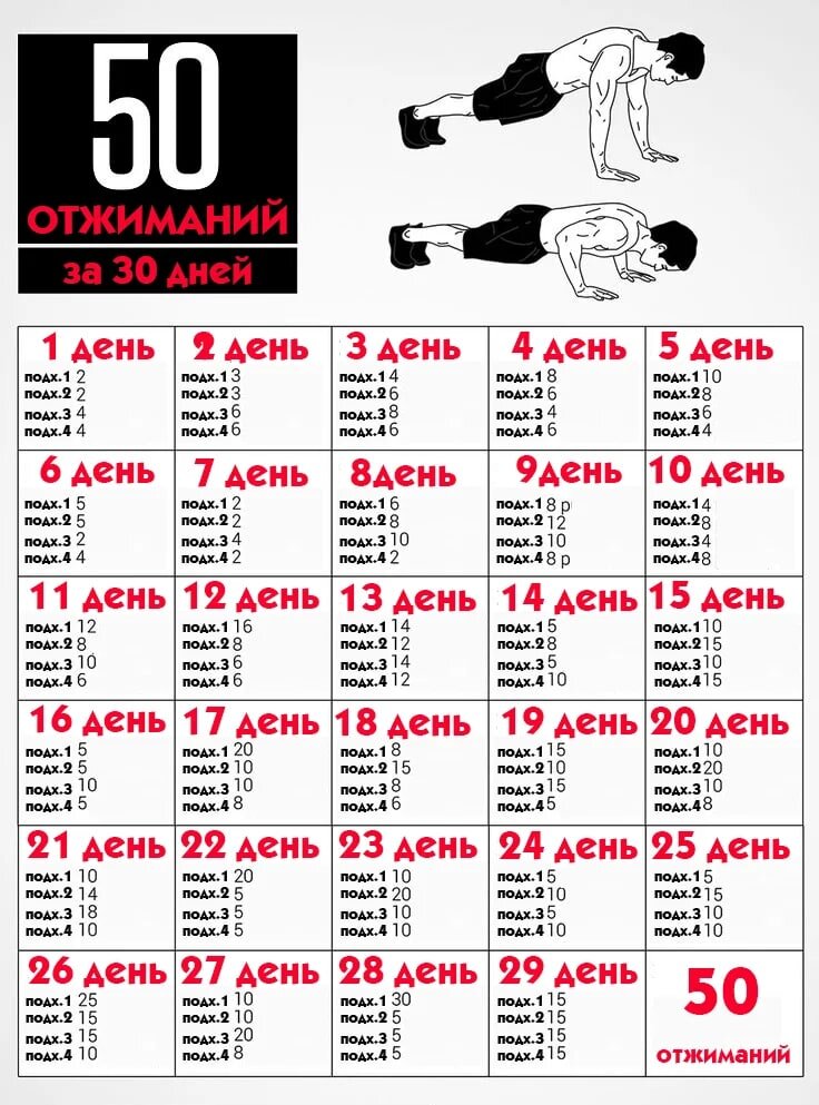 Отжимания с 0 до 50 за 30 дней!