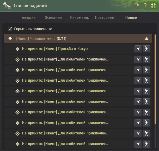 В списке заданий - Новые - можно увидеть цепочку квестов [Ивент] Человек мира. Всего 11 заданий.