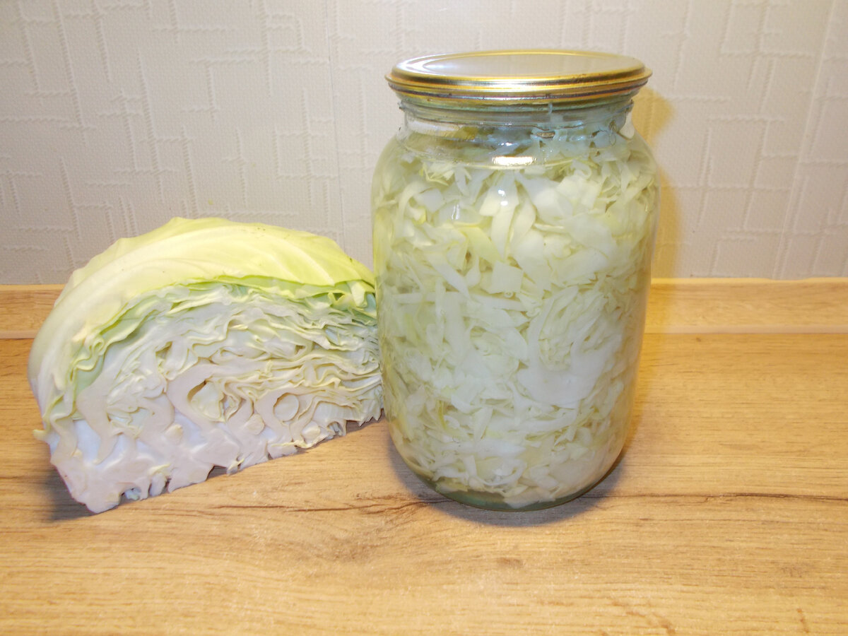 Цена на белокочанную капусту в прошлом году в магазинах, по крайней мере в нашем городе, была заоблочная 70-90 р. за 1 кг. Поэтому хочется сделать запасы капусты не только квашеной, тушеной и маринованной. На ютубе попался новый для меня рецепт. Блогер, выложивший рецепт, обещает что приготовленная по этому рецепту капуста будет храниться в подвале и год и два. Ну что же, проверим! Банки вымойте. Крышки прокипятите 5 минут. Капусту нарежьте тонкими полосочками. Капусту в банку переложите не очень плотно. Утрамбовывать не надо. Поверх капусты положите 1 таблетку аспирина. Залейте капусту крутым кипятком. На залитую кипятком капусту выложите еще пол таблетки аспирина. Банки закатайте крышками. Банки с капустой переверните вверх дном и укутайте одеялом до полного остывания. Как и советует блогер, я буду хранить капусту в подполье))) ингредиенты: капуста - сколько войдет в одну литровую банку аспирин (ацетилсалициловая к-та) - 1.5 таблетки кипяток - 0.6 л.