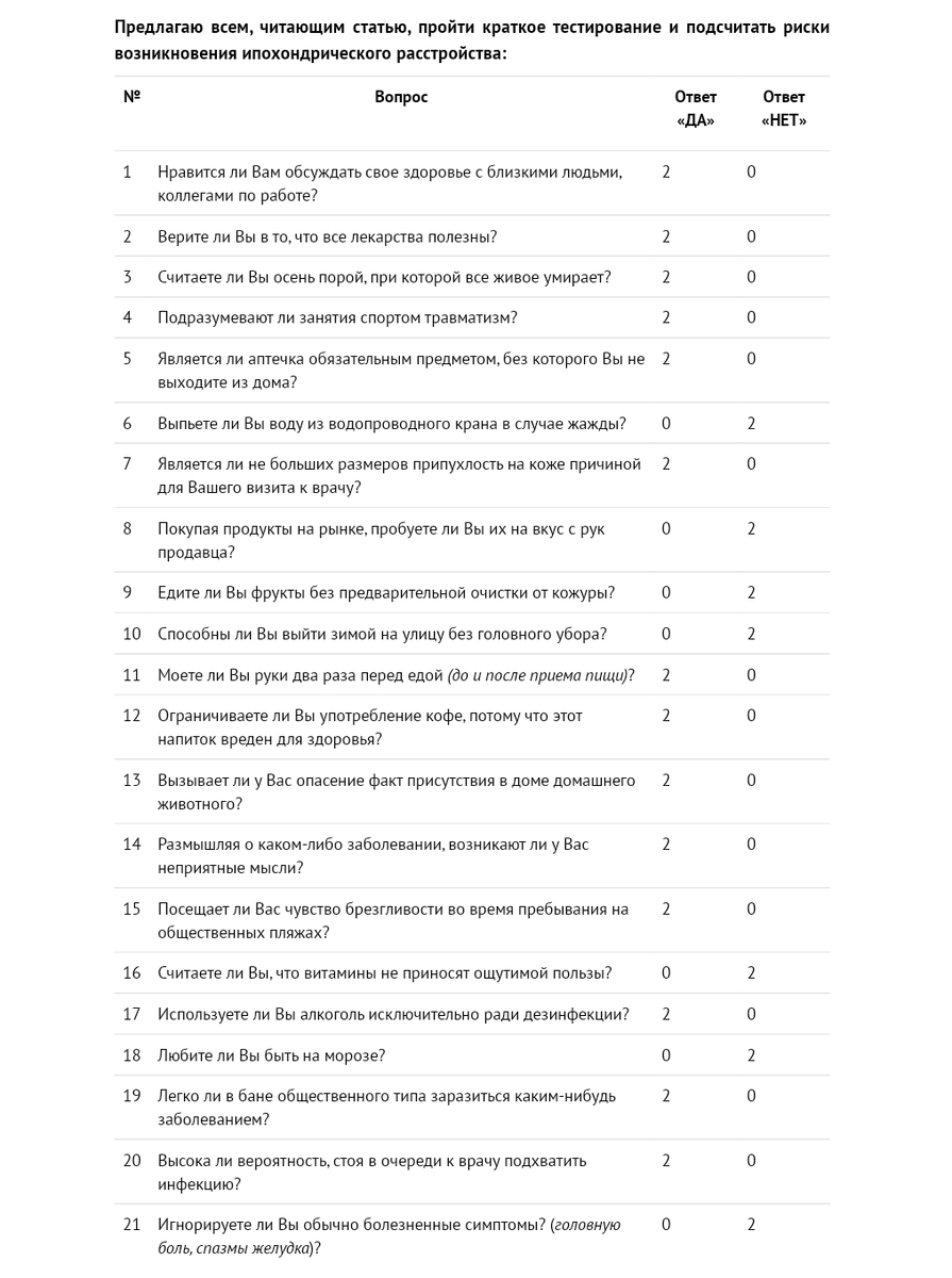 - тест на риск развития ипохондрии