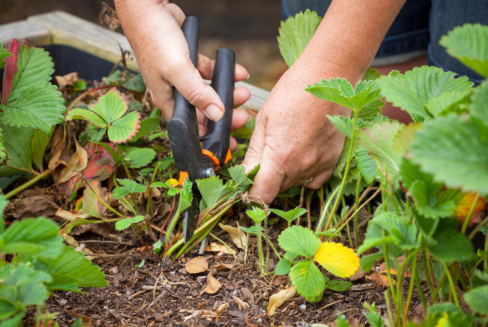 Тема удаления зеленой массы клубники после снятия урожая создает вокруг себя немало споров. Одни дачники приверженцы тотального удаления надземной части, другие категорически против вмешательств в природу, ну а третьи ищут истину в литературе. И здесь бесспорно правы последние, ведь только самостоятельно изучив агротехнические правила, можно смело считать себя правым! Для понимания того, что делать с клубникой после плодоношения, достаточно разобраться в целях обрезки. Для клубники обрезка не гарант здоровья. Рассудите сами! Ну, удалим мы зелень, а грибковые споры сидят в почве. Значит, все равно грядку обрабатывать, либо для лечения, либо для профилактики. Листья играют наиважнейшую роль в плане выживаемости культуры, тем более той, у которой столь миниатюрная корневая система. Если мы обрезаем надземную часть, то лишаем корни их главной защиты, потому в засушливые периоды у многих, кто практикует выстригание листьев, клубника попросту высыхает. Что очень неприятно, когда сорта покуп