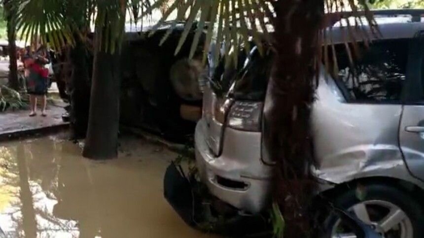 Автосвалка во дворе: опубликовано видео с последствиями потопа в Сочи