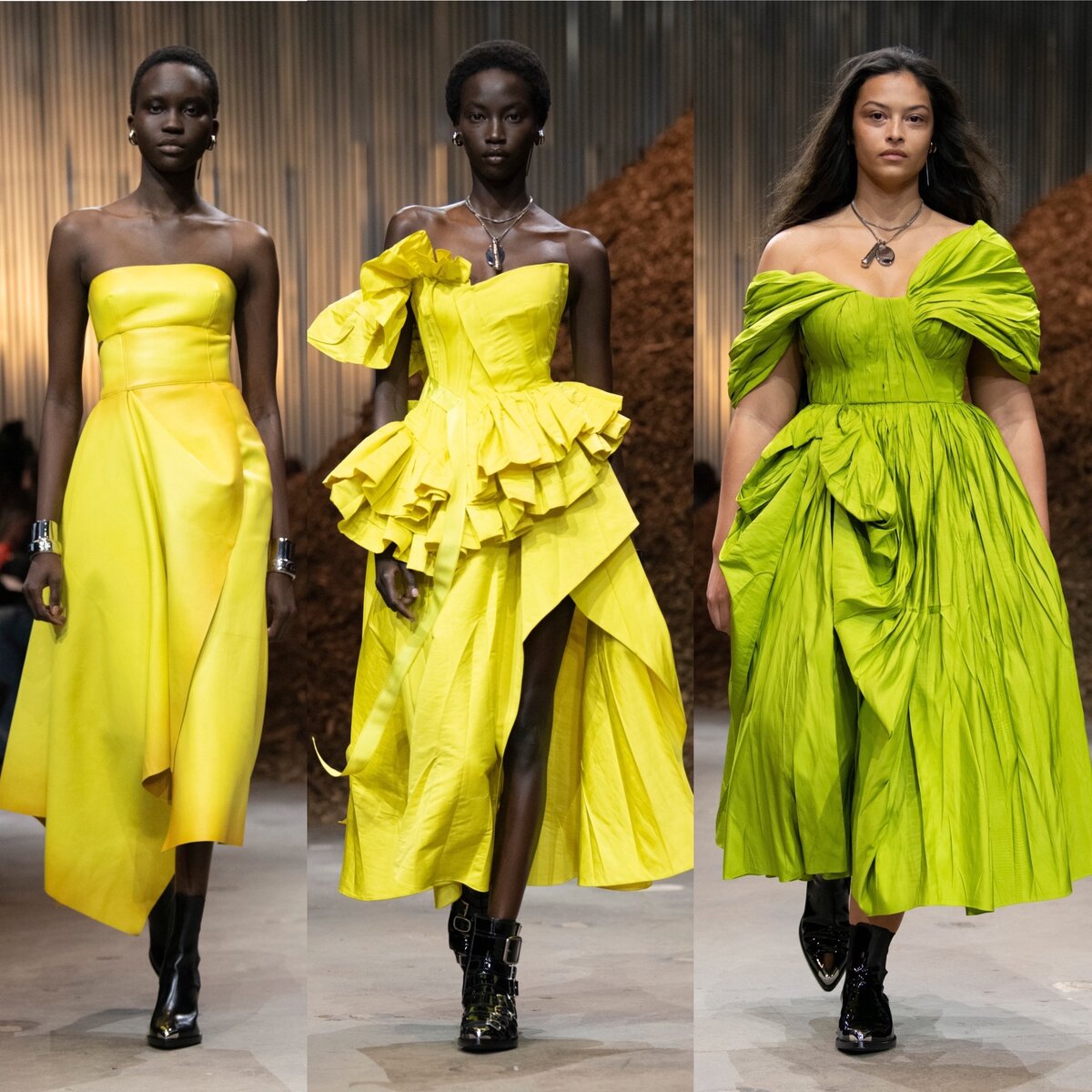 Alexander McQueen FW’22 RTW - это яркая запоминающаяся коллекция, местом проведения которой стал Нью-Йорк - культовый город для основателя бренда. «Нью-Йорк всегда был частью МД Alexander McQueen — сказала Сара Бёртон. - Он часть нашего творческого сообщества. Здорово вспомнить об этом». Нью-Йорк с его яркими неоновыми огнями, город, который никогда не спит, привлекая людей, словно мотыльков, на этот свет. «О чем вы забываете в Нью-Йорке, так это о свете, свет такой чистый и резкий». Коллекция имеет название «Мицелий» (грибница) и, соответственно, посвящена грибному царству. Что ж, грибы волнуют многих дизайнеров на протяжении нескольких последних лет. Стелла Маккартни даже изготавливает одежду из так называемой грибной кожи. Сара Бёртон пока так далеко не зашла, но её команда упорно над этим работает. Пока они ограничились ресайклингом, чтобы коллекция была максимально экологичной. Грибы на свитерах, грибы в качестве вышивок и принтов, грибная бахрома, споры… Но самое главное
