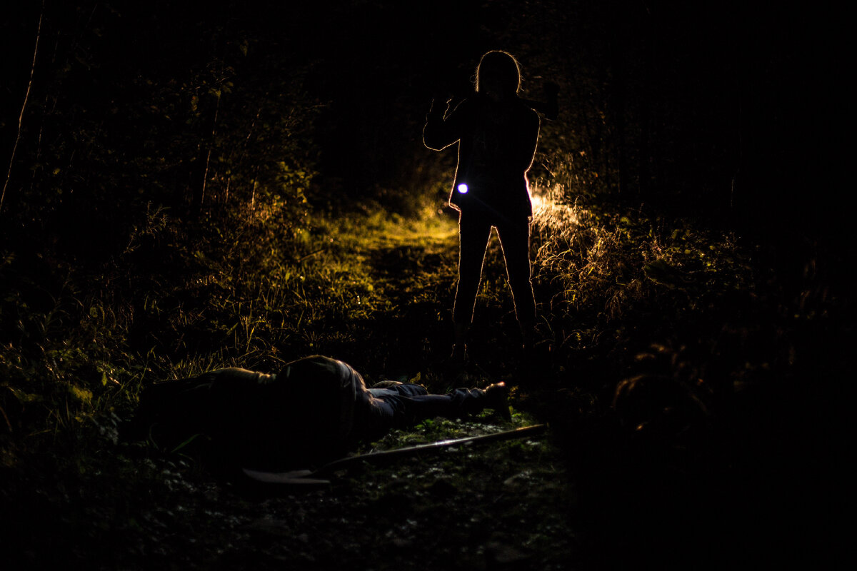 Поравнявшись с незваным гостем, Петренко от души врезал ему по лбу прикладом, вымещая недоумение и злобу, захлестнувшие агонизирующее в тревоге сознание. Мужик завалился на спину, и сержант с размаха всадил ему в глазницу свой любимый кинжал. А потом снова и снова. Чавкающий звук сменил хруст, и Чумаков поспешил на выручку другу, впавшему в аффект.