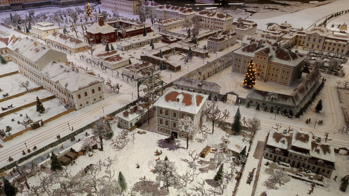 Город, каким он был задолго до нас, можно увидеть на шестом этаже торгового центра "Адмирал". Петербург зимний, по дорогам которого мчат крытые сани. На озере маленькие человечки чертят коньками узоры по поверхности льда. В домах уютно, светло, жители занимаются бытовыми делами. Интересно заглянуть в этот маленький мир. Парусники скользят по водной глади, много маленьких суденышек. День сменяется ночью - загорается множество огоньков. Летняя часть макета не менее интересна. Особняки, цветущие сады. В крошечном Петергофе крошечные фонтанчики работают, как настоящие! Знать развлекается. Дамы в шикарных нарядах, статные кавалеры. Охота, концерты, обеды, пикники. Крошечные голштинцы палят из ружей по мишеням, гардемарины фехтуют. Фотографировала, что могла - заносить руки с камерой за ограждение нельзя. Всё очень маленькое, советую брать бинокли. Много интерактивных кнопок, которые запускают небольшие сценки. Можно увидеть, как медведь по дереву лезет ща мёдом, как работает мельни