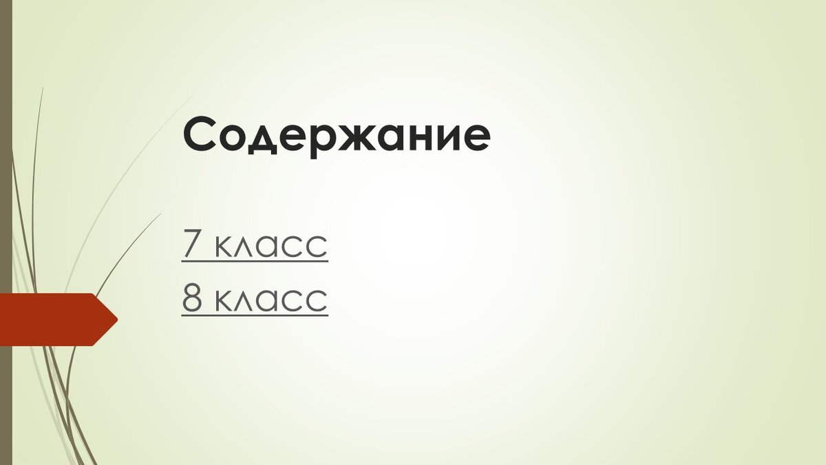 Содержание 7 класс Содержание 8 класс