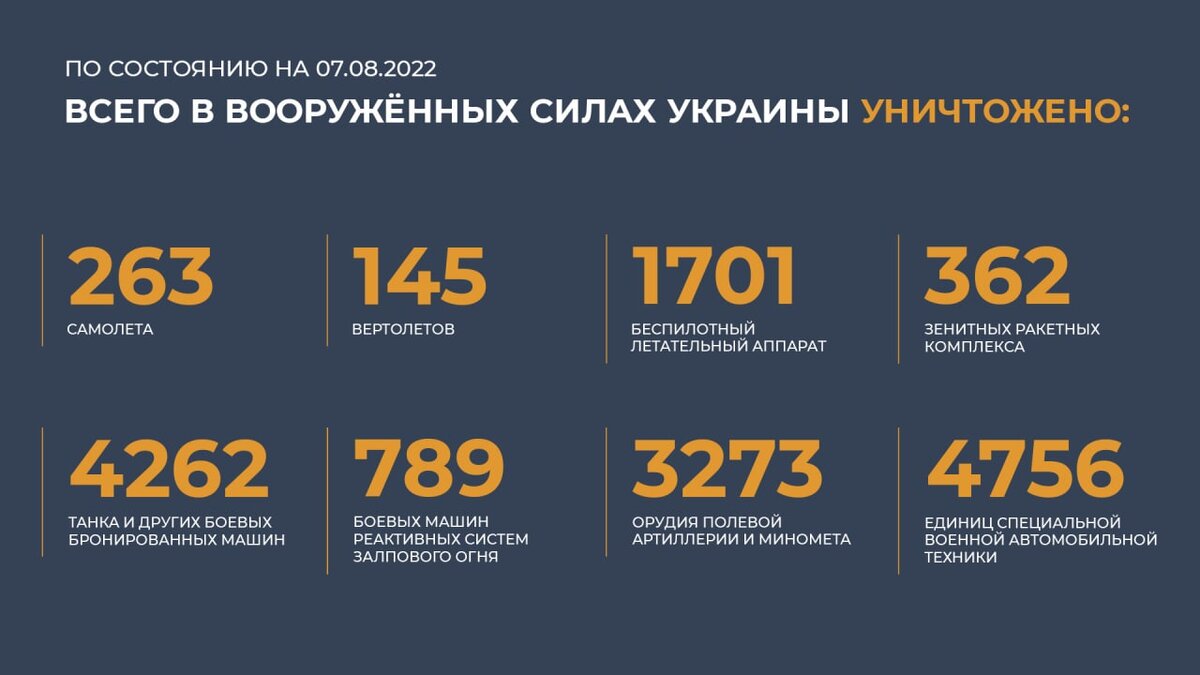 Сводка Министерства обороны Российской Федерации о ходе проведения специальной военной операции на территории Украины (07.08.2022 г.)