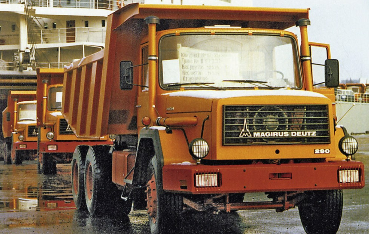Осенью 1974 года впервые были подписаны договора на поставку грузовиков Magirus в Советский Союз. До этого машины лишь проходили длительные испытания в суровых сибирских условиях. В основном их поставляли для работы на БАМе. Но, когда техники было уже достаточно, она из ФРГ начала поступать и в другие регионы страны. В Союз поставляли три машины Magirus Deutz: Изначально машина конструировалась для того, чтобы эксплуатироваться в пожарных частях, но, со временем, когда фирма-производитель начала нести убытки, она передала все в руки другого завода. Усиленно шли переговоры с концерном ФИАТ, появилось новое название IVECO, которые в свою очередь решили поставлять их в Союз. Магирусы называли тружениками БАМа, потому что эти самосвалы были огромными и легко справлялись с любой задачей. Это было необходимо на труднопроходимых дорогах в холод и зной. Магирус был покорителем Сибири и мог пройти практически везде. Байкало-Амурская магистраль не появилась бы если бы не иностранная техника. П