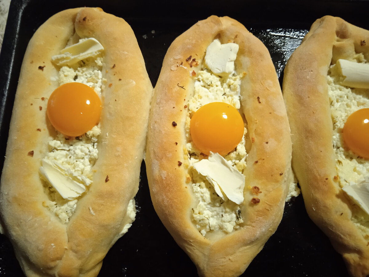 Я назвала их так потому , что это подобие хачапури по-аджарски, но они с творогом. Рецепт: Мука-800гр Дрожжи-10гр Яйца-4шт Сахар-60гр Соль-1ч, л Масло подсолнечное-100мл Молоко-200мл Начинка: Творог-1кг Соль Зелень Желтки-4шт Сырок дружба-3-4шт. 1) Сделать опару из муки, сахара, дрожжи, тёплого молока, оставить на 15мин. 2) Приготовить начинку из творога, желтка, зелень, соль, я добавила ещё обычный сырок дружба 3шт. 3) В опару добавляем вме остальные продукты и замешиваем тесто, не крутое. 4) разделяем на шарики, и раскатываем 1см в круг. По краям выкладываем начинку, сворачиваем и формируем лодочку. Во внутрь накладываем начинку. Запекаем 25минут. На горячие лодочки кладём по желтку и сливочное масло. Прятного аппетита!