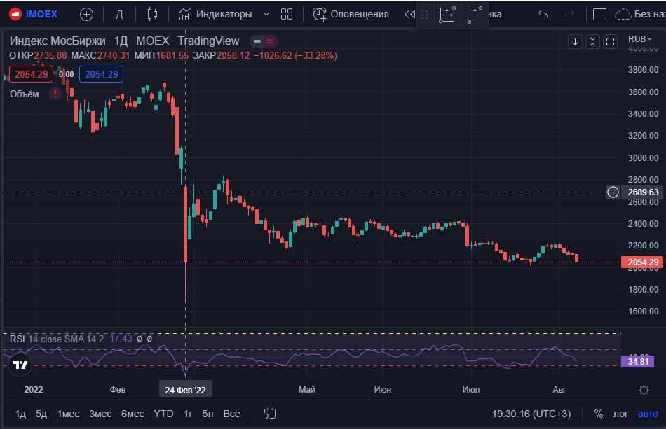 🤯 А у нас происходит на российском фондовом рынке распродажа. Ещё в апреле рассказывал вам, что те уровни, которые взял IMOEX (вынос был свыше 2800 пунктов) не отражают тех обстоятельств, что ожидают нас в будущем (влияние санкций и наступление кризиса нелепо отрицать). В уме мы тогда держали и будущую рецессию на Западе (от которой ФРС всячески отнекивался). И вот все обстоятельства начали давить на наш рынок, но главное, что паника возникла из-за допуска 8 августа на российский фондовый рынок дружественных нерезидентов. Как итог, IMOEX сегодня закрылся ниже закрытия 24 февраля (вот мы и подобрались к тем ужасным цифрам в которые уже не верили все крупные фонды).