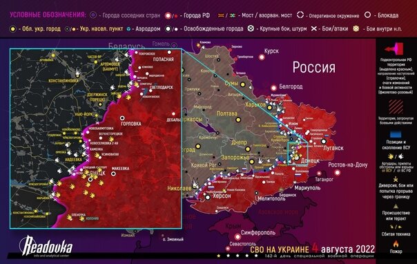 Продолжаем следить за происходящим на Украине в зоне СВО. Сегодня у нас речь пойдет о понедельнике 1 августа 2022 года, вторнике 2 августа 2022 года, среде 3 августа 2022 года и четверге 4 августа 2022 года. Это, соответственно, 159, 160, 161 и 162 день СВО.