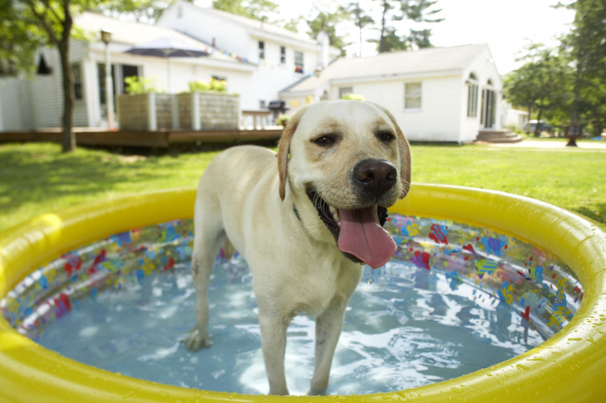 Если вы часто ездите с домашним любимцем на дачу, купите ему специальный бассейн. Регулярные водные процедуры в прохладной воде пойдут на пользу и помогут избежать перегрева на солнце.