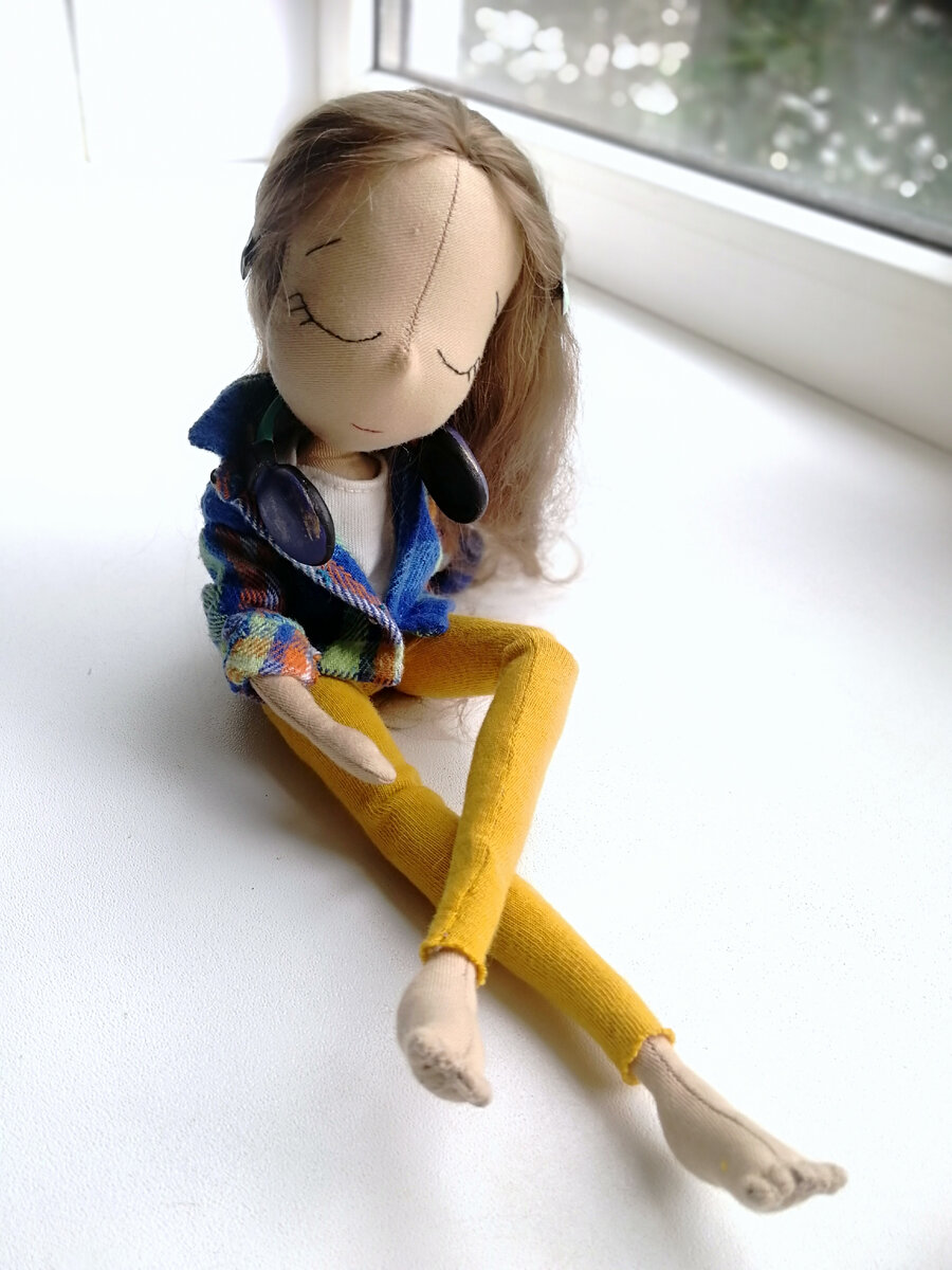 Привет, друг. Меня зовут Варя и я шью текстильные игрушки и кукол. Об этой кукле я могу говорить часами 😁 Нет, правда. В ней всё настолько клёво и здорово, что я любуюсь ей уже не первую неделю. Почему же я раньше не показала её? Всё дело в пуговицах🤦🏻♀️😁 Но начну по порядку. У этой куколки впервые натуральные локоны и выглядит это просто афигенно. Ну, лично для меня😁 Я никогда раньше даже не трогала руками эту шерсть, не то что работать с ней и вся эта история заслуживает отдельного поста. Но если вы не пробовали работать с шерстью ангорской козы, то рекомендую) Могу сказать, что крепила я волосы этим методом и всё прошло хорошо. Разве что макушку я сделала иначе, там есть нюансы. Но работала я с этим материалом впервые, так что не мне вас учить) Что касается одежды, то шить руками одно удовольствие. Вообще скажу, что эта кукла вся состоит из вещей и мелочей, сделаных мною впервые. Эту рубашку я сшила на одном дыхании и полностью вручную мелким стежком. Сочиняла выкройку на