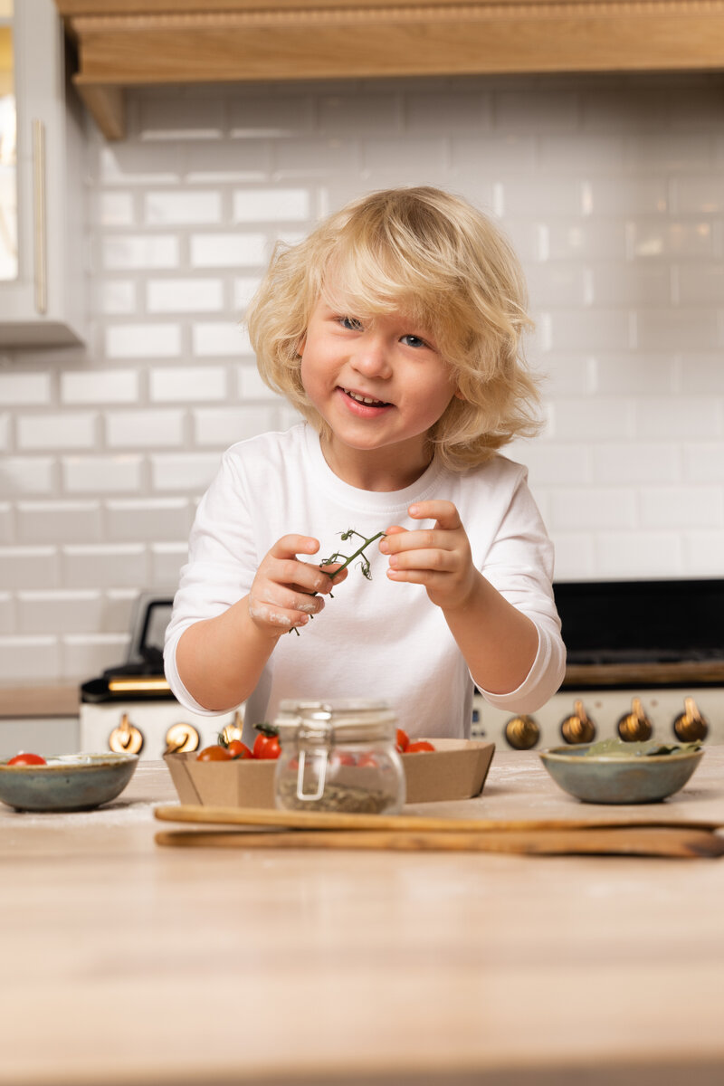 Маленькие дети хотят копировать своих родителей — у них может появиться интерес к домашним делам. Конечно, быстрее и спокойнее всё сделать самому. Но следовать за интересом ребёнка очень важно! В будущем это перерастёт в желание помогать вам по дому и поддерживать чистоту самостоятельно. Если ребенок тянется к готовке, то давайте не будем ему препятствовать! Ему наверняка понравится быть самостоятельными — конечно, под вашим присмотром. Расскажем, как сделать совместную работу на кухне безопасной для детей: 1. Выбирайте задачи по возрасту. 2-3 года: ребенок может не знать, как называются некоторые кулинарные принадлежности и продукты — показывайте и называйте все предметы, описывайте их цвет и форму. Пусть он попробует рассортировать продукты, которые вы назвали. 4-5 лет: в таком возрасте дети чувствуют себя на кухне увереннее. Им можно доверить мыть овощи и фрукты, намазывать творожный сыр или варенье на хлеб. 6-7 лет: в этом возрасте дети уже могут пользоваться электроприборами — чай
