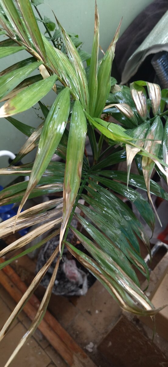Заехали к дочке в магазин. Поболтали,и уже собирались уходить,как дочь произнесла:"Мам, посмотри в угол!" Я оглянулась и увидела это несчастное создание. -Мам,ну я подумала,что оно тебе нужно и притащила его с помойки. - Ну теперь конечно оно мне нужно. Не погибать же ему на помойке. Эх... Дочь знает, что я Мать Тереза для сирых и убогих))) Это была хамедорея в плачевном состоянии. Взяв ее за ствол,чтобы перетащить в машину,почувствовала липкость,что указывало на заражение щитовкой. Осмотрев растение, я ужаснулись, все веточки были усыпаны вредителем. Велела мужу ехать на дачу. Приехав ,встали на щебневой дороге. Муж таскал воду, а я отсылала каждый листочек, ветки, ствол ,корни. Обламывали ветки,которые совсем высохли. Приехав домой,я отправила хамедорею в кладовку на лестничную клетку. Посадила ее в горшок со свежим грунтом. Снова стала мыть ее уже мыльным раствором, осматривая каждый листочек. Потом опрыскала актарой. На следующий день я ушла в сутки на работу и не представляла,к
